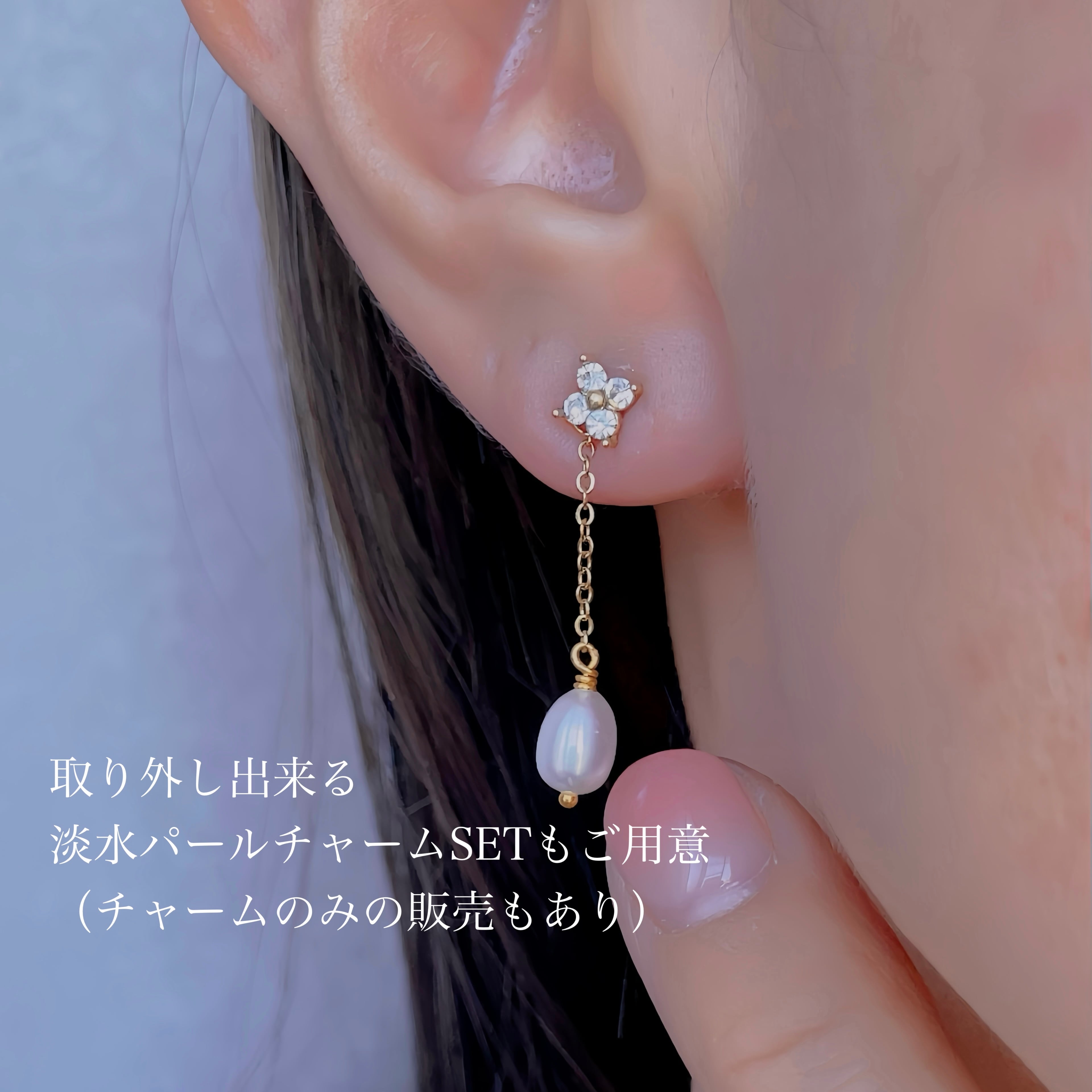 ◇ 花にも四つ葉にも見える大人可愛いCZピアス ◇