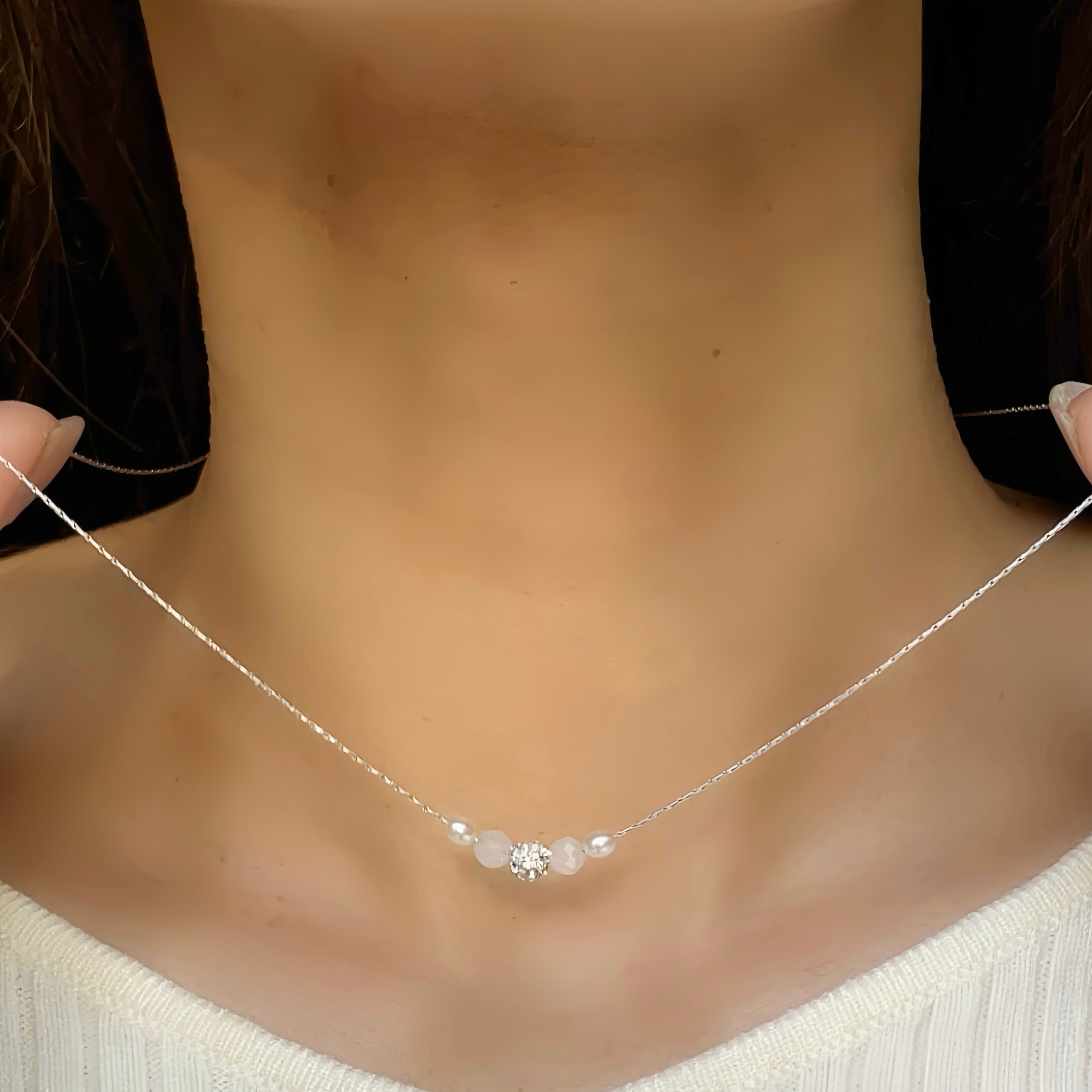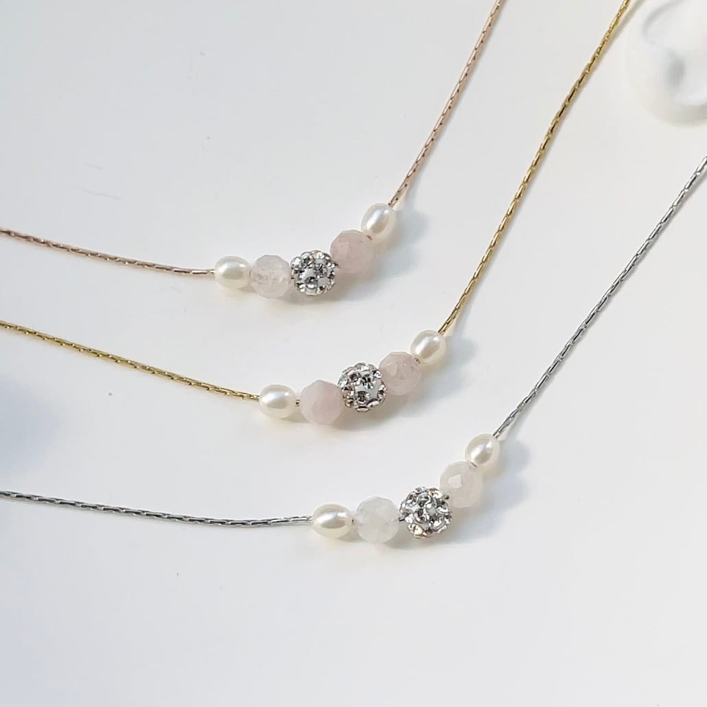 大人の 華奢 5粒 ネックレス /ベビーパール+モルガナイト+CZ パヴェ ダイヤ 金属アレルギー対応 サージカルステンレス大人の 華奢 5粒 ネックレス /ベビーパール+モルガナイト+CZ パヴェ ダイヤ 金属アレルギー対応 サージカルステンレス
