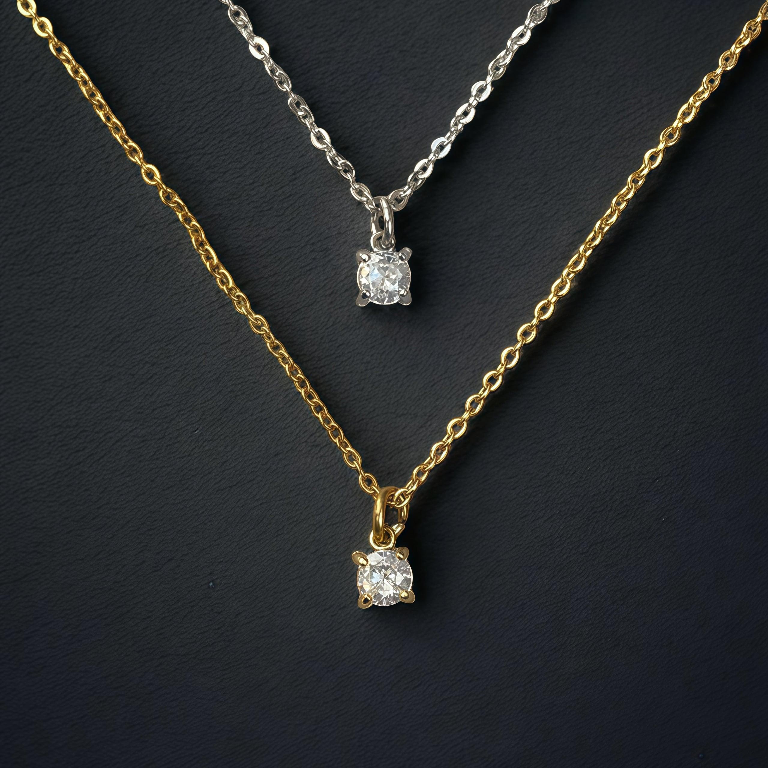 小さな 1粒 CZ 華奢 ネックレス/金属アレルギー対応/316L サージカルステンレス
