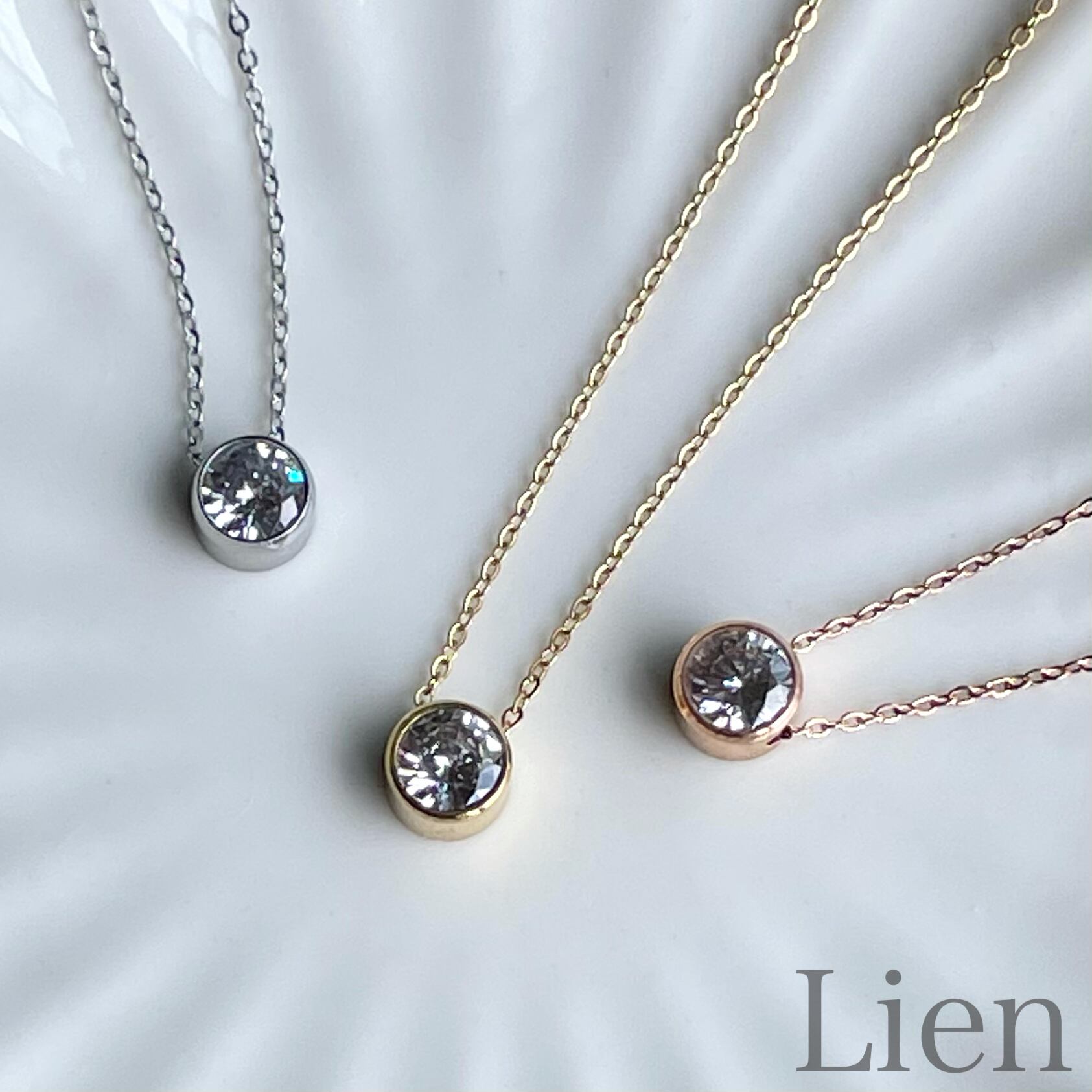 1粒 CZ diamond ネックレス◆つけっぱなし!OK 316L サージカルステンレス Lien