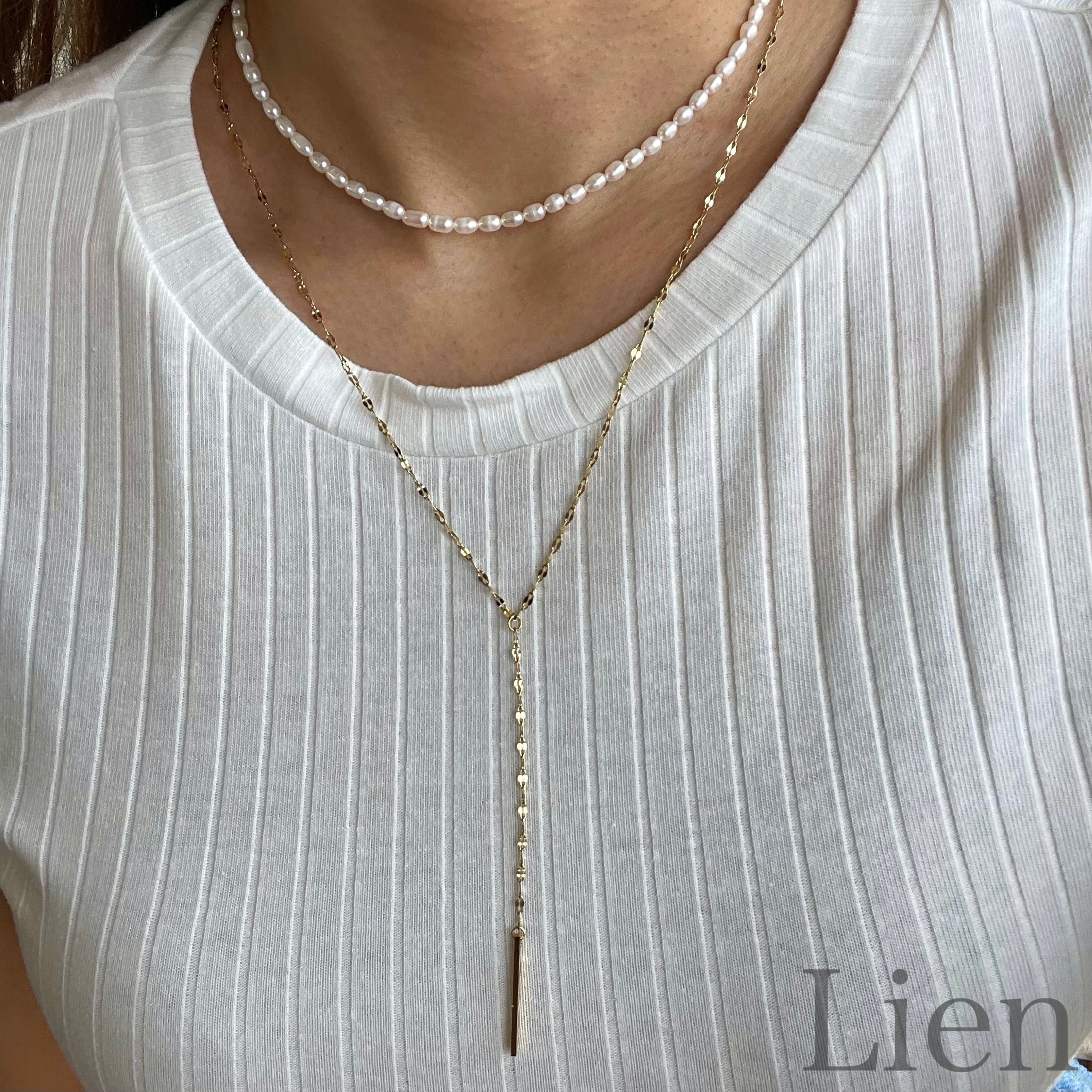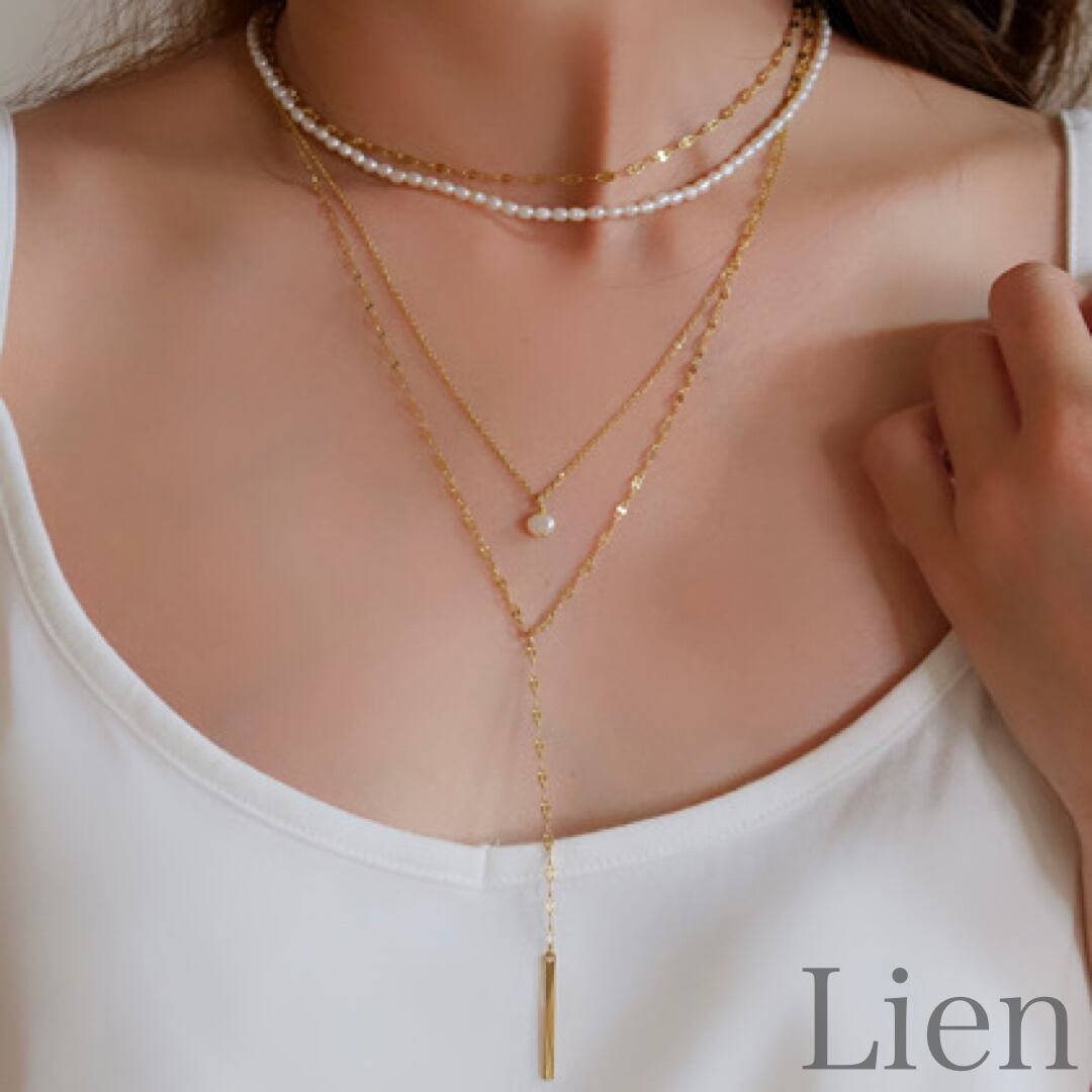 ラリエット風 ぺタルチェーン ネックレス◆つけっぱなし!OK 316L サージカルステンレス Lien