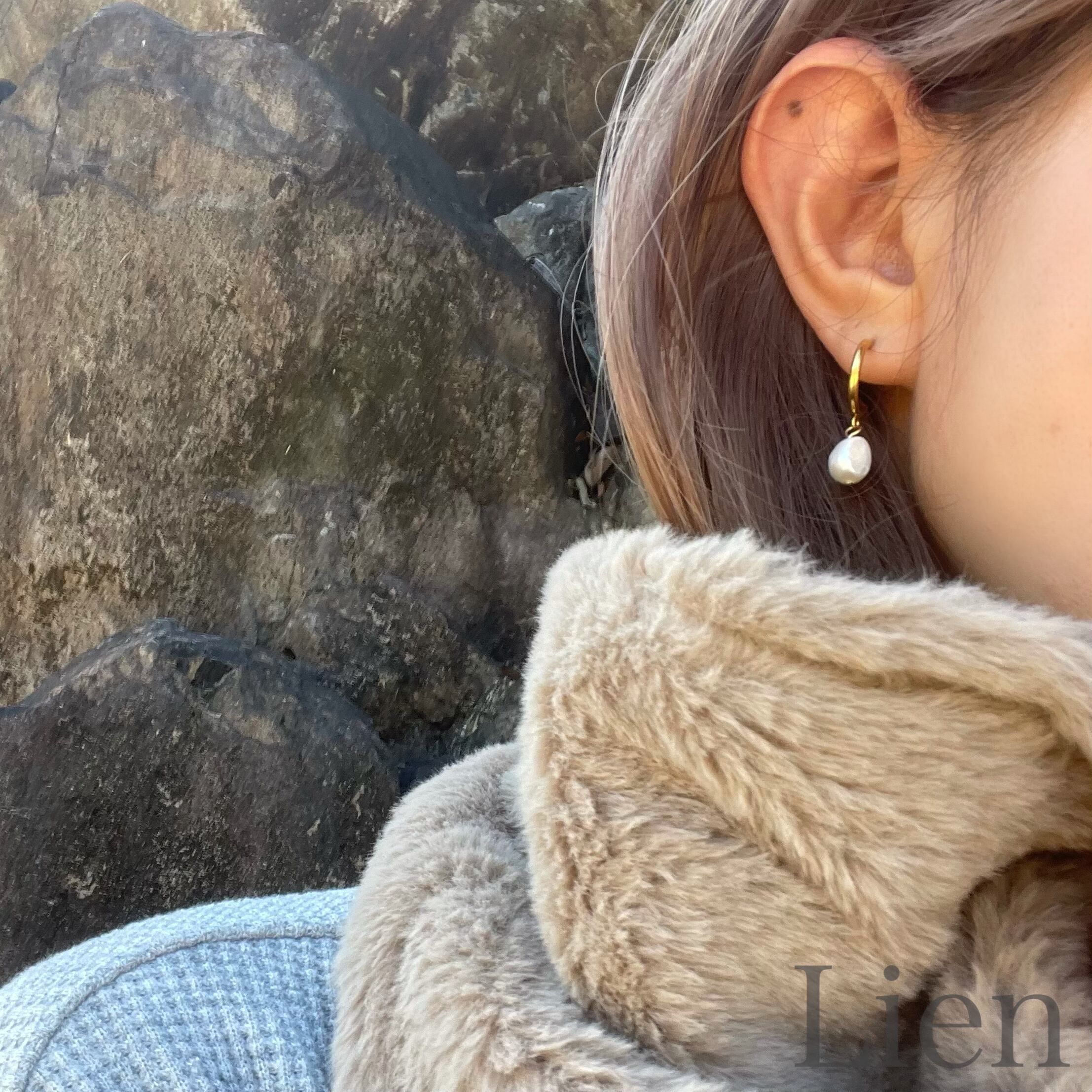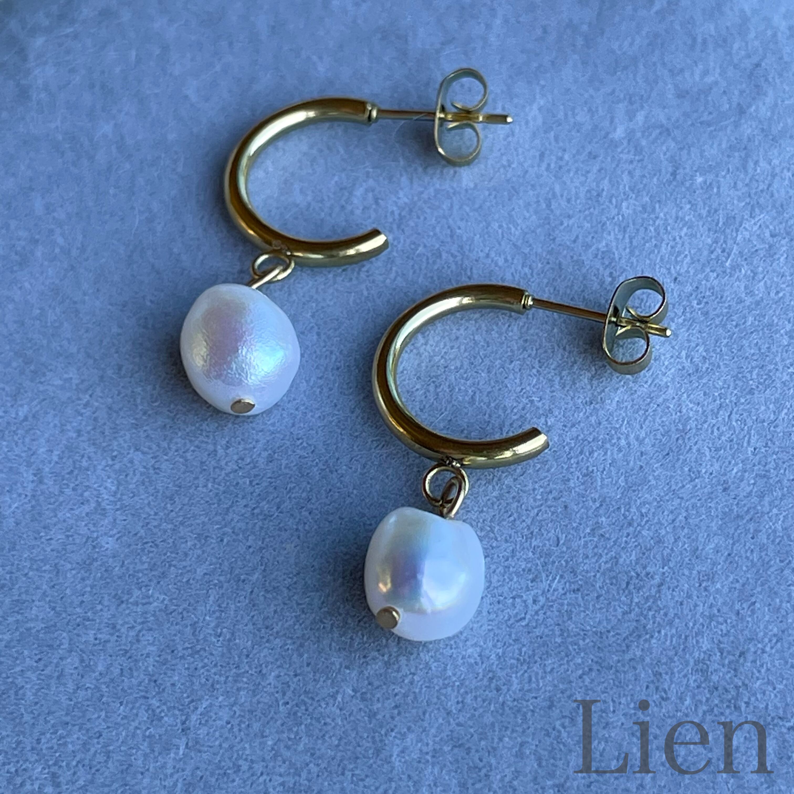 1粒 淡水パール フープ ピアス◆つけっぱなし!OK 316L サージカルステンレス Lien