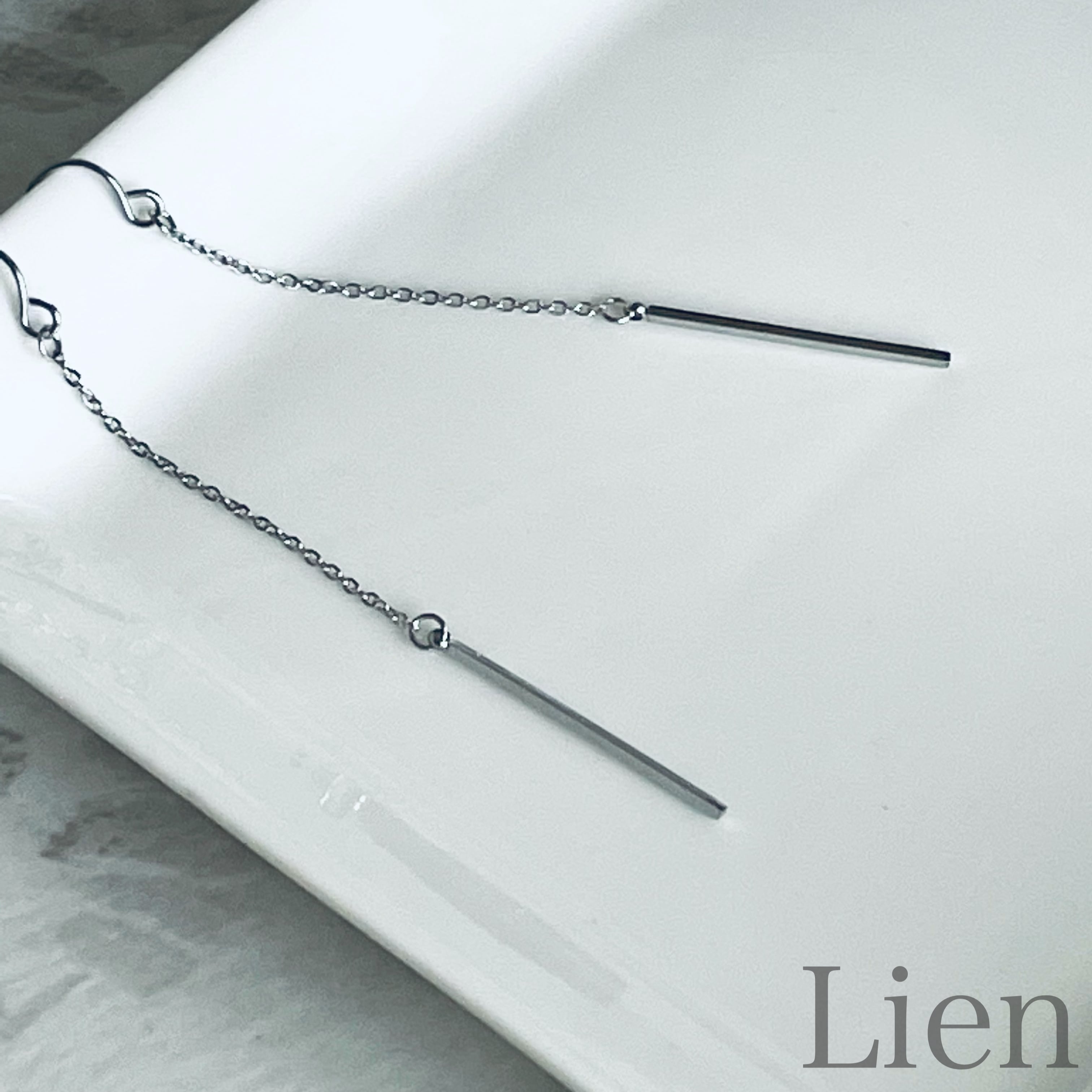 揺れる ロングチェーン バー ピアス◆つけっぱなし!OK 316L サージカルステンレス Lien