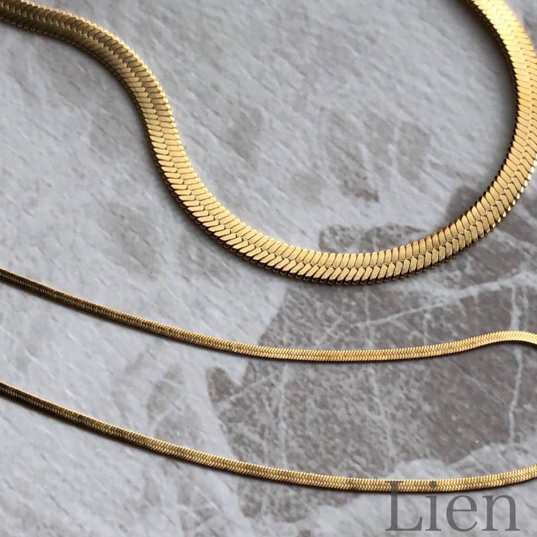 4mm 平打ち 幅広 スネークチェーン ネックレス◆つけっぱなし!OK 316L サージカルステンレス Lien