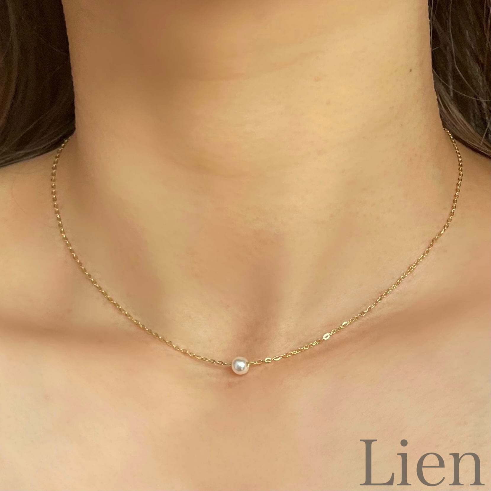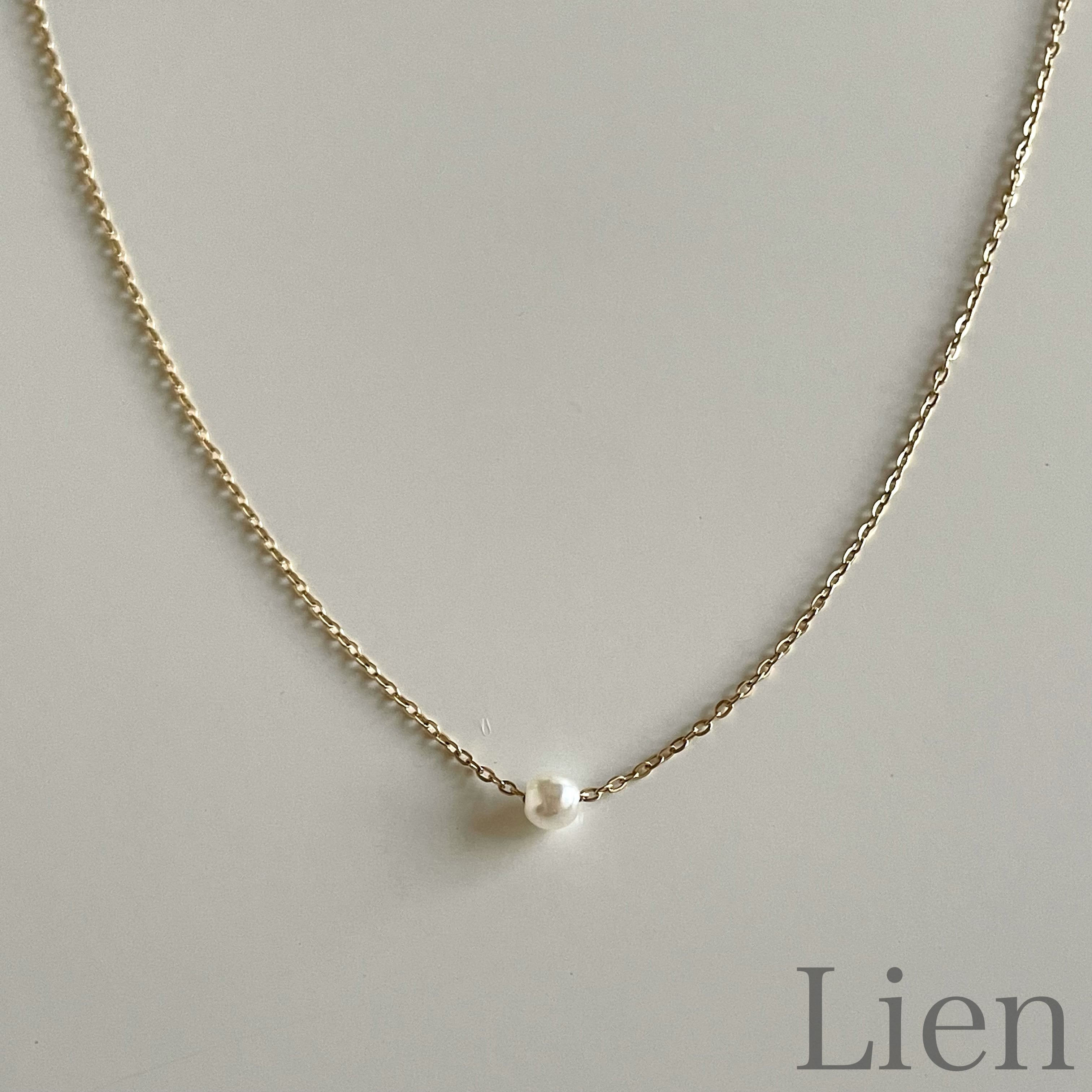 華奢見え 1粒 パール ビーズ あずきチェーン ネックレス◆つけっぱなし!OK 316L サージカルステンレス Lien