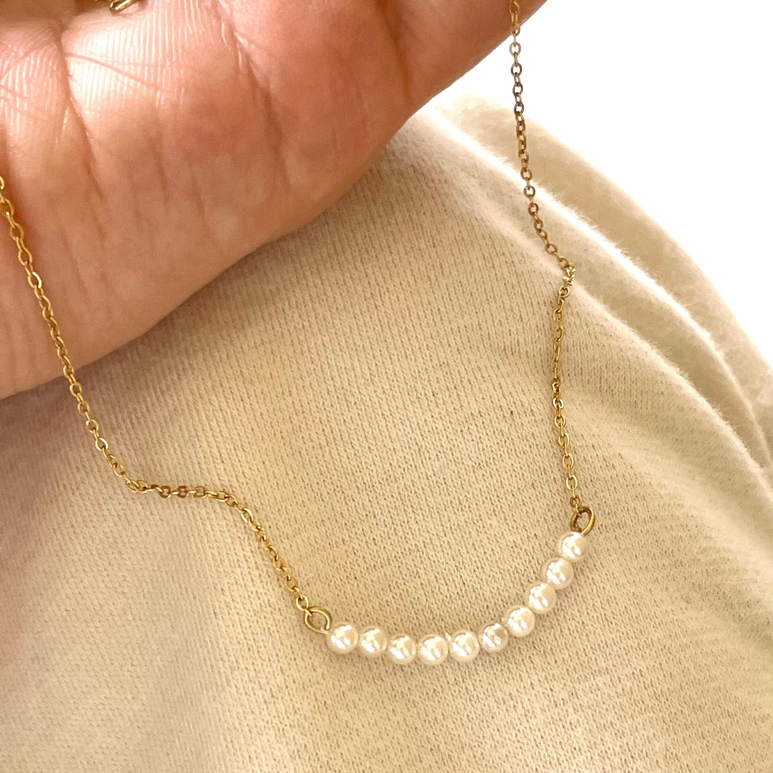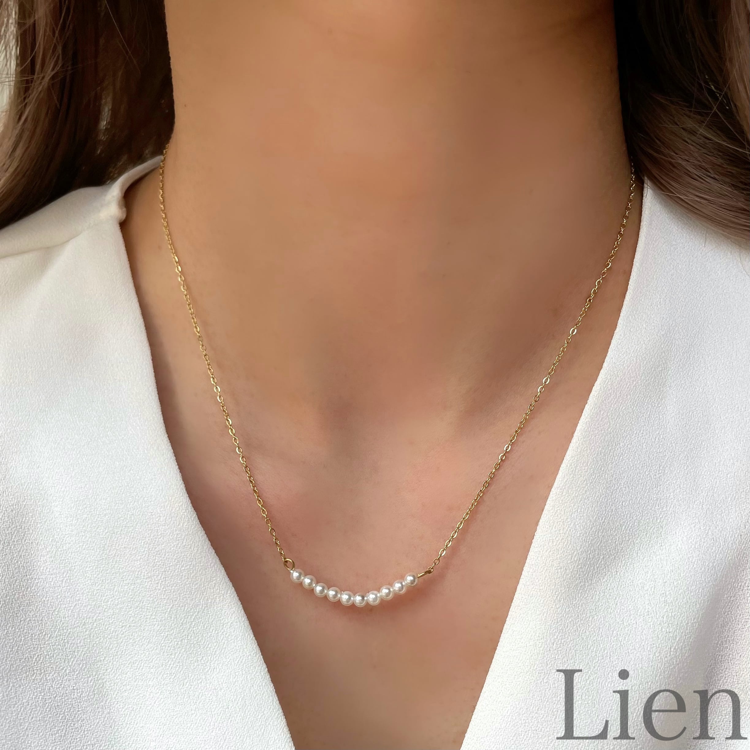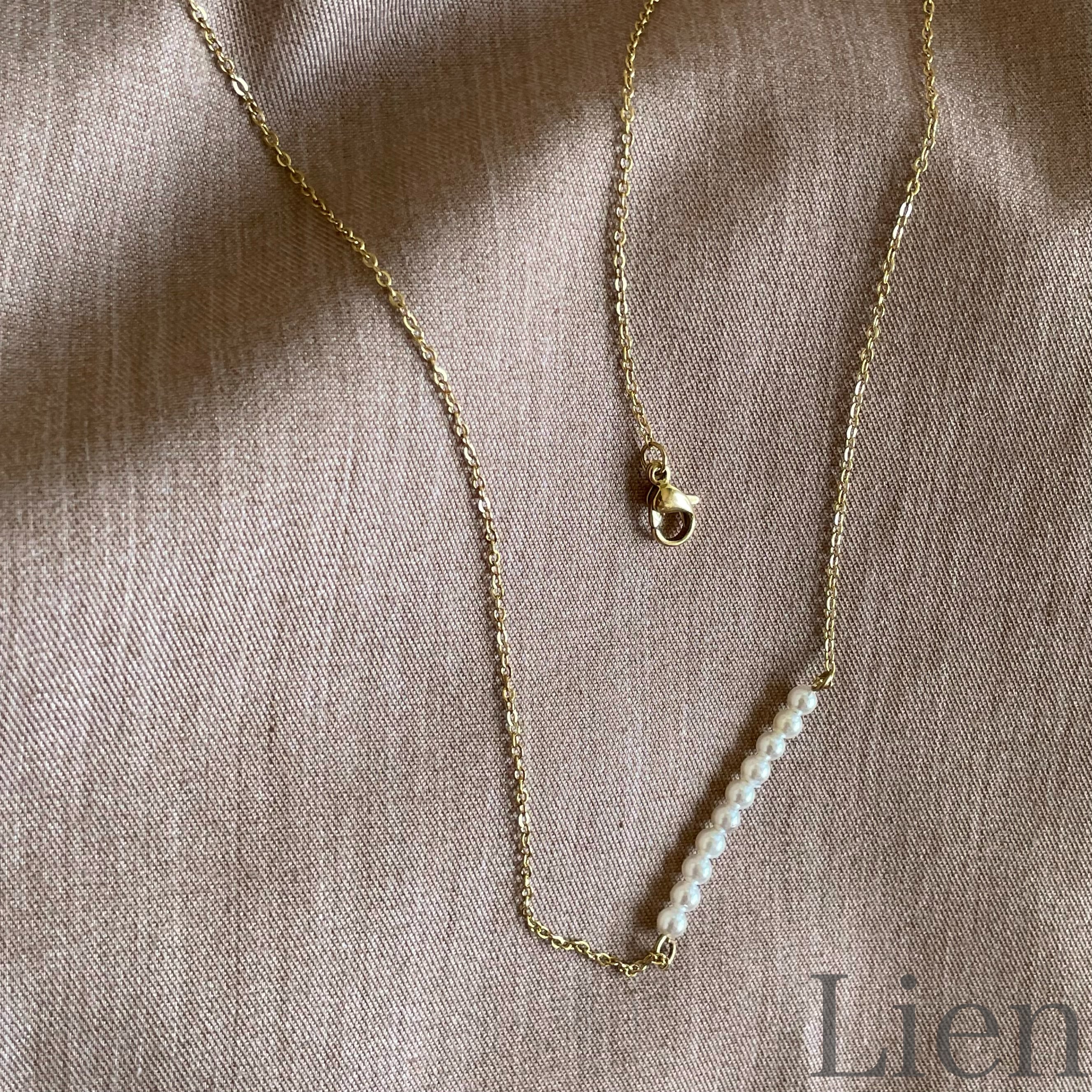 2way 華奢見え バーモチーフ パール ビーズ あずきチェーン ネックレス◆つけっぱなし!OK 316L サージカルステンレス Lien