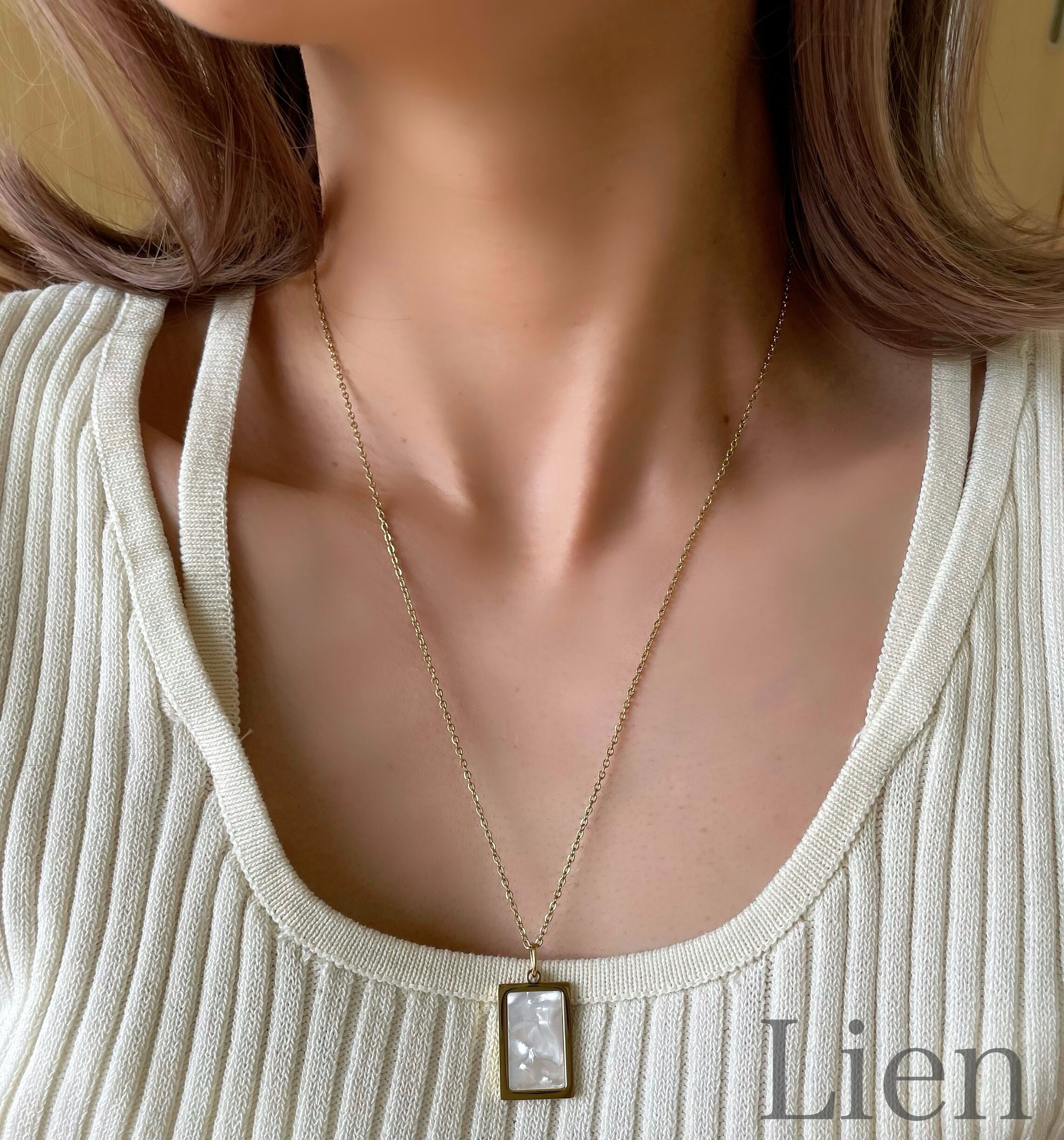 シェルプレート モチーフ ロング ネックレス◆つけっぱなし!OK 316L サージカルステンレス Lien
