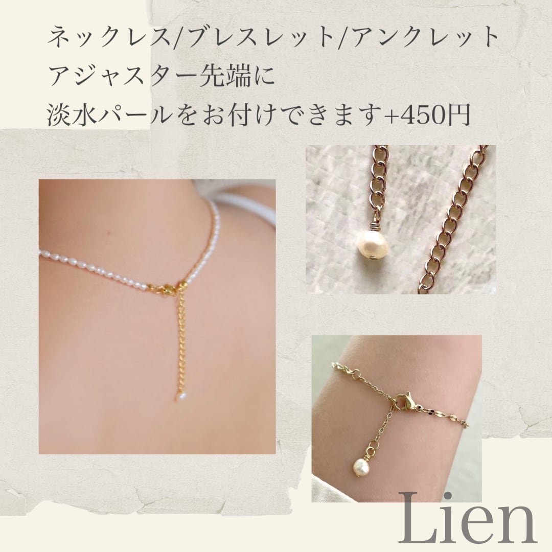 ※アジャスターは丸カンとあずきチェーンの組み合わせの見た目もよく肌馴染みの良いアジャスターとなります