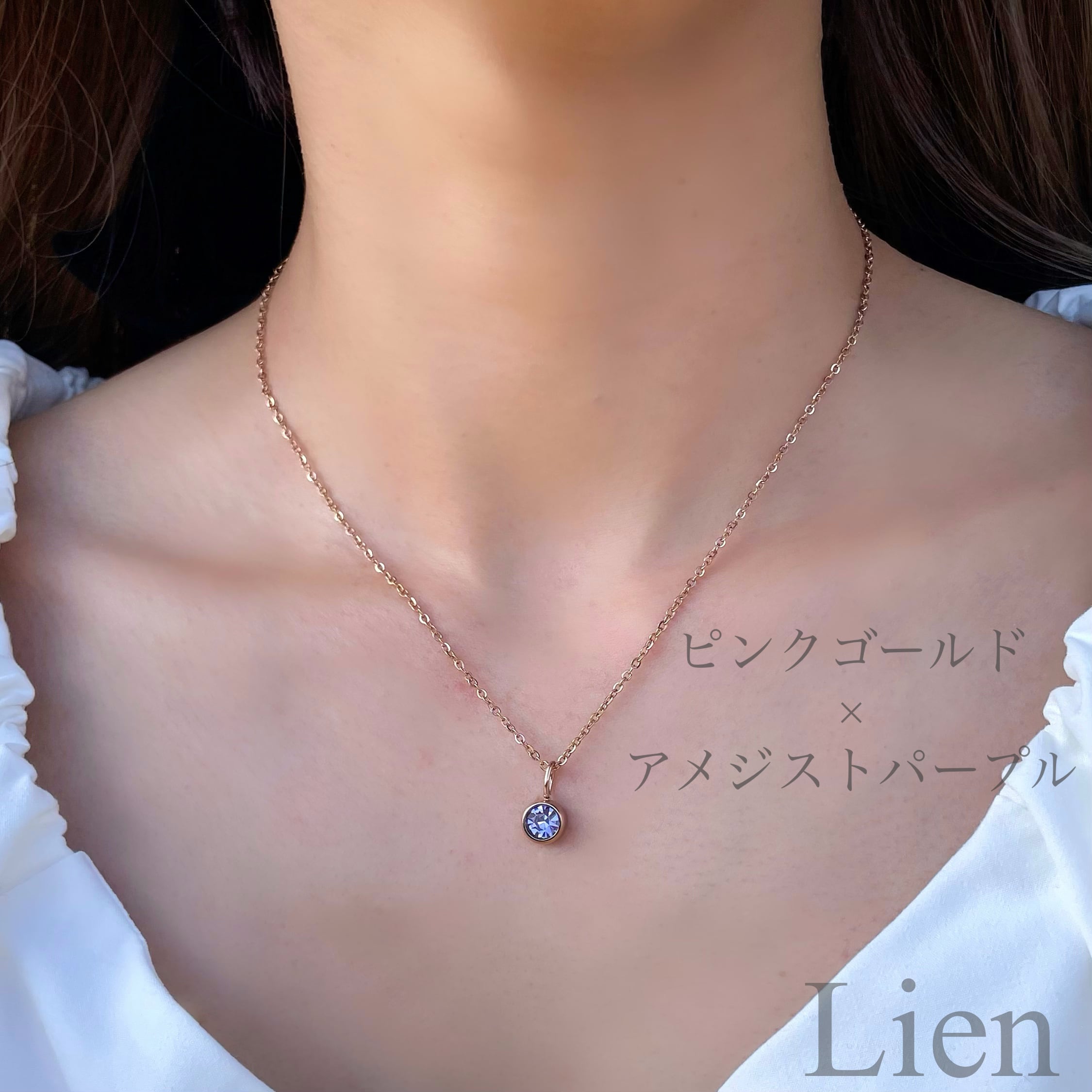 12色◆誕生石 バースデーカラー 1粒 ベゼル ネックレス◆つけっぱなし!OK 316L サージカルステンレス Lien
